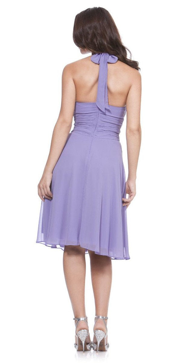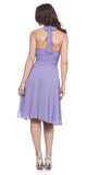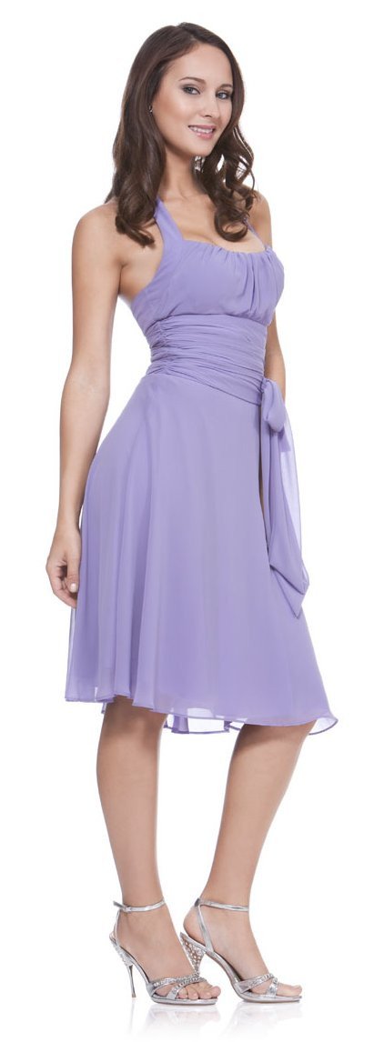 Halter Strap Lilac Bridesmaid Dress Chiffon With Bow Knee Length