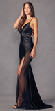 Juliet 2417 Sexy Floor Length Sheer Beaded Slit Satin Dress