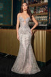 Radiate glamour in this strapless mermaid gown by Ladivine CC2421, featuring a plunging neckline and dazzling crystal-beaded symmetrical motif. The layered tulle skirt flares beautifully from the knee, while the lace-up corset back ensures a sculpted, flawless fit. Perfect for prom, a formal gala, or any black-tie affair where you want to make a lasting impression.