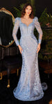 Imagine yourself in this beautiful floor length evening gown for your next formal event by Ladivine CD989. This long sleeve formal dress features an illusion sweetheart neckline, glitter print and an enclosed sheer zipper back. An ideal full-length dress for red carpet events, pageant, prom or in any other formal occasions!