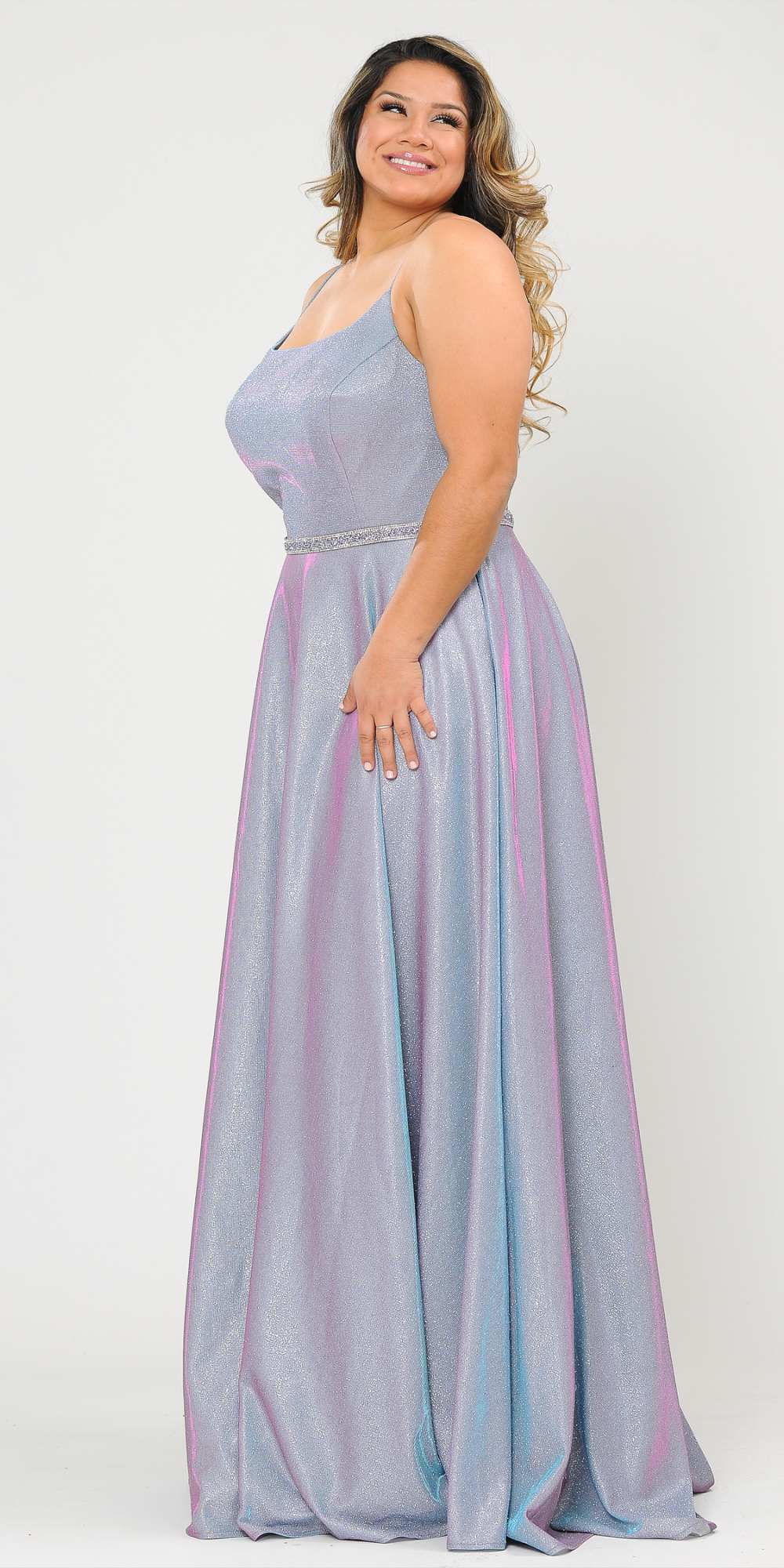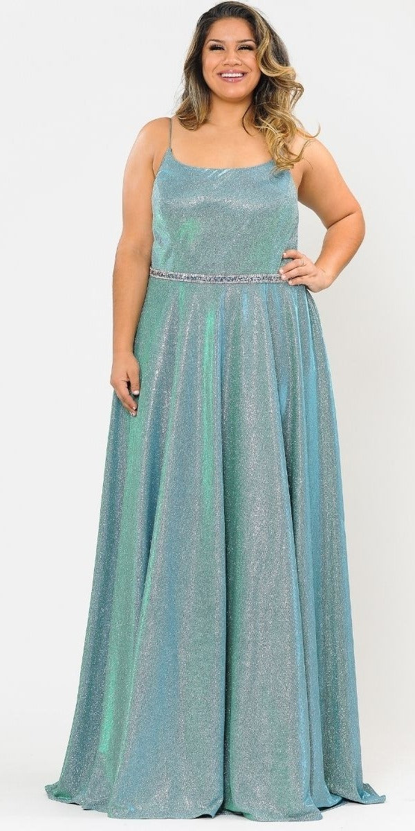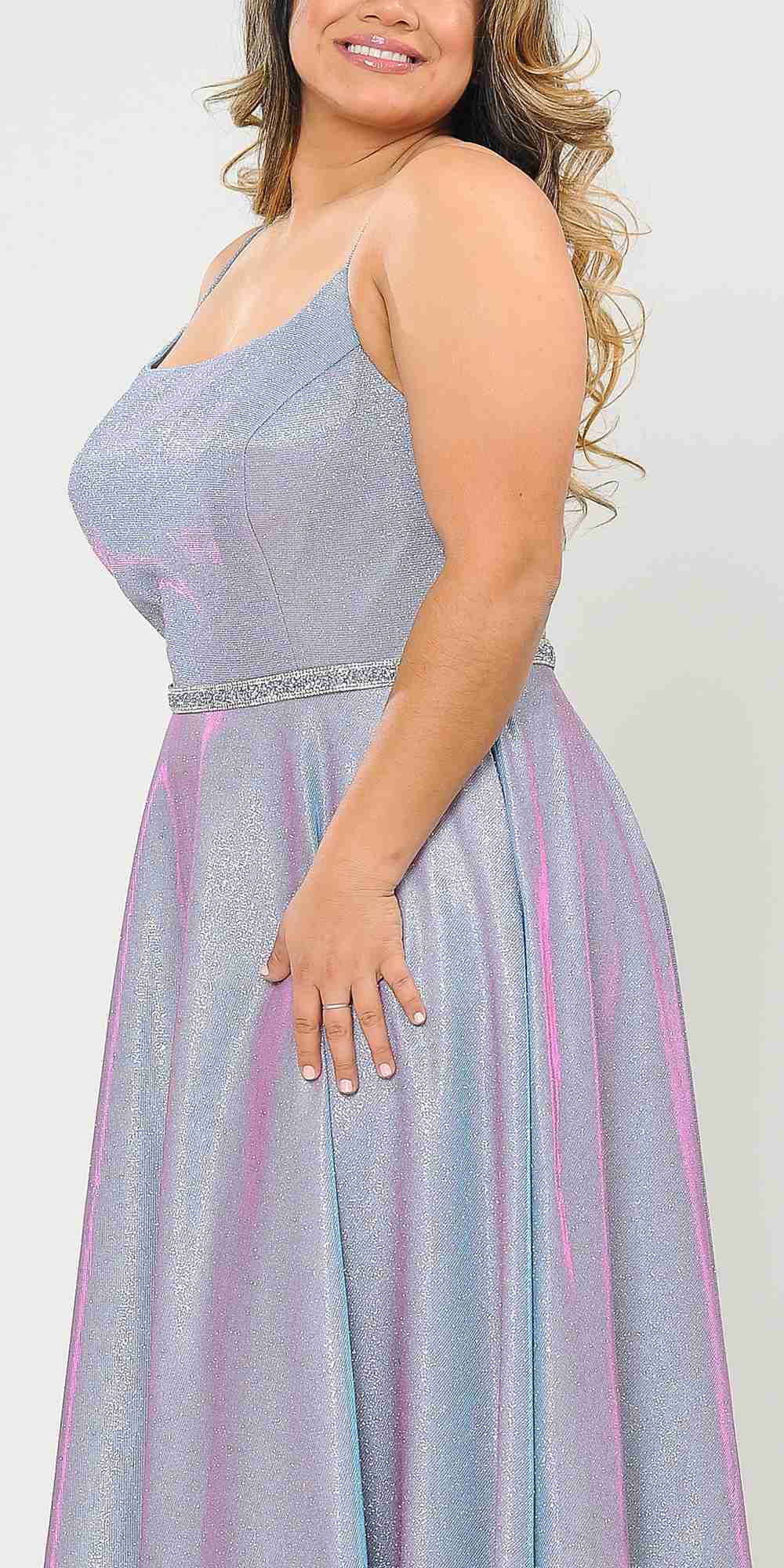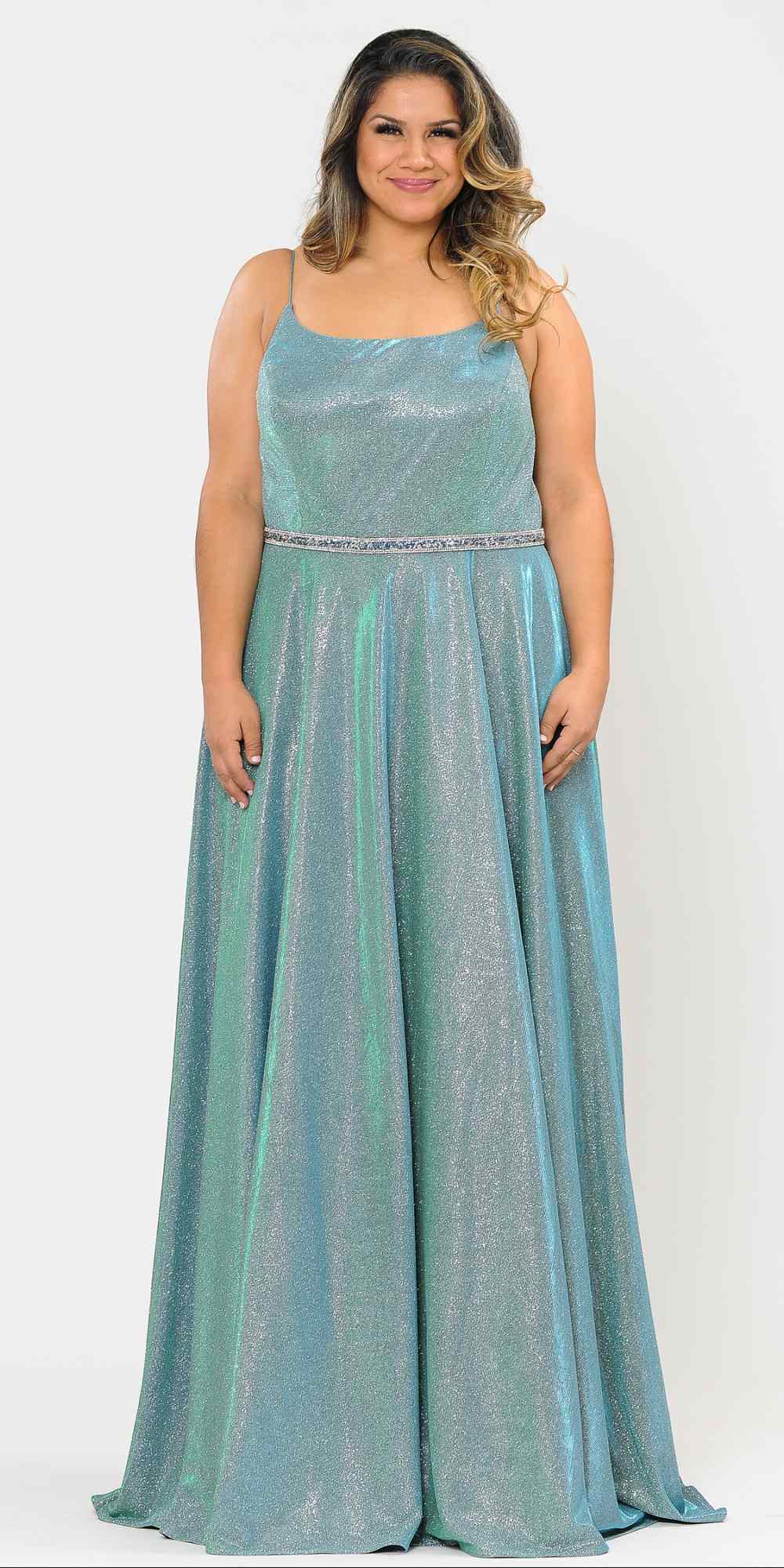 Lindas W1038 Square Neck Rhinestone Belt Iridescent Glitter Plus Size Dress