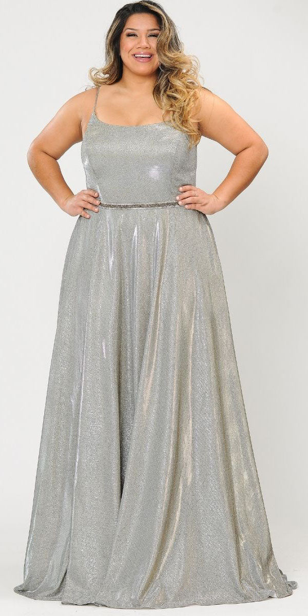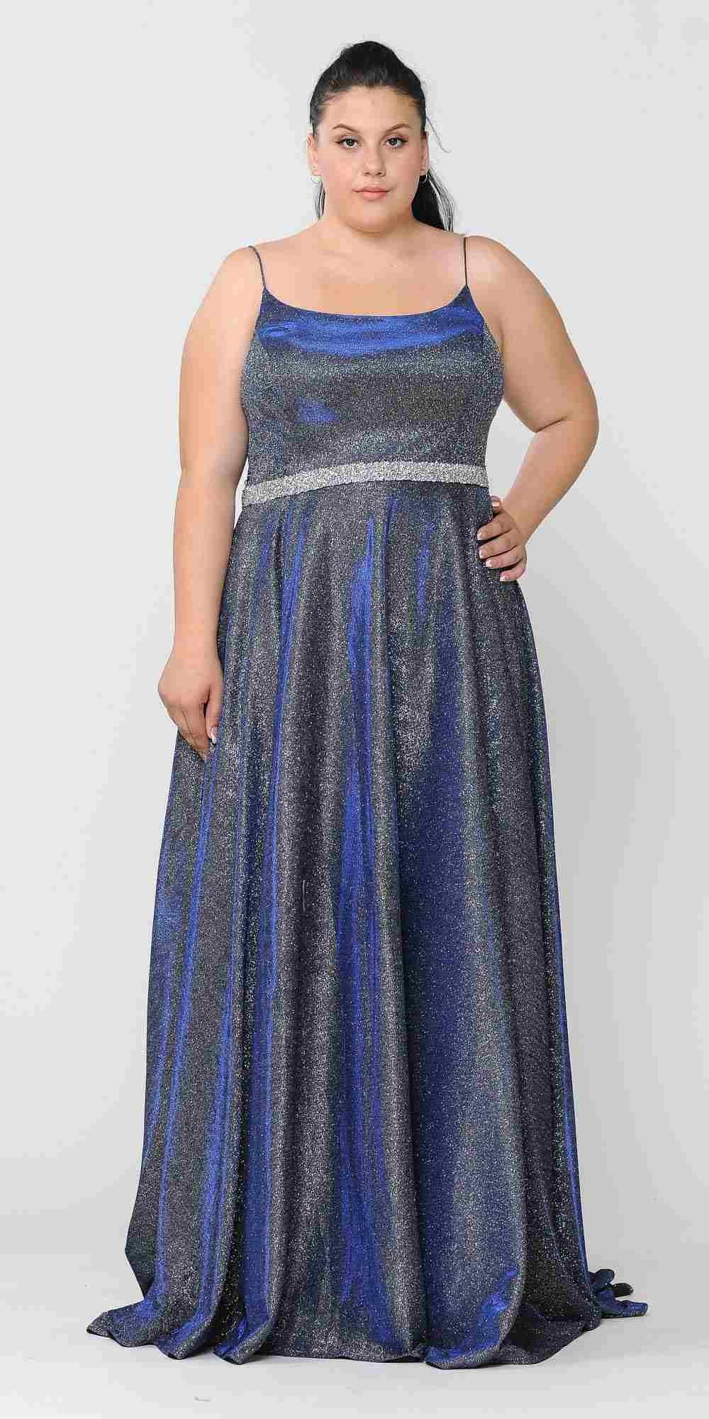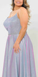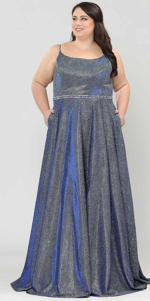 Imagine yourself wearing this beautiful floor length A-line glitter knit plus size dress by Lindas W1038. This long, A-line dress features a square-neckline, side pockets, rhinestone waistline and corset lace up tie back. An ideal full-length dress for prom, special occasion, party or in any other formal occasions!