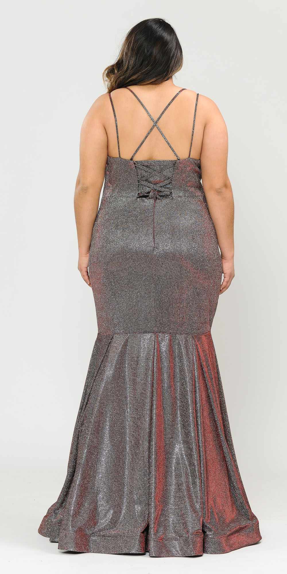 Imagine yourself wearing this beautiful floor length glitter knit plus size dress by Lindas W1102. This long mermaid dress features a square neckline, double spaghetti straps and a corset lace up tie back. An ideal full-length dress for prom, special occasion, party or in any other formal occasions!