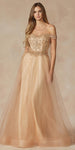 Juliet 287 Long Off the Shoulder Beaded Top A-Line Prom Dress