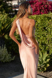 Ladivine BD7045 Long Satin Draped Back Dress Cowl Neckline