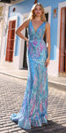 Nox Anabel R1402 Long Plunging V-Neck Fitted Sequin Print Gown