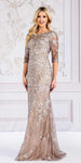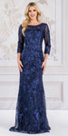 Amelia Couture 7045 Long Mid-Sleeve Scoop Neckline Fitted Dress