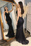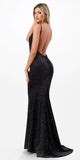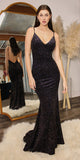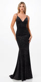 Imagine yourself wearing this beautiful floor length velvet evening gown for your next formal event. This long formal dress by Amoris SE015P features thin spaghetti straps with flocked glitter detail, V-neckline and open low ruched back. A fabulous full length sheath dress for red carpet events, pageant, prom or in any other formal occasions!