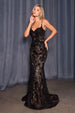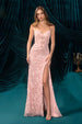 Ethereal and feminine, this fitted lace gown by Andrea & Leo A1499 blends romantic detailing with modern glamour. Delicate floral lace is layered over a sheer bodice, accented by dainty bow appliqués and subtle beaded illumination that catches the light with every movement. The slim silhouette features a sultry thigh-high slit and classic spaghetti straps, while the sculpted bodice provides flattering support. A soft sweep train completes the look—perfect for prom, formal soirées, or elegant evening celebrations.
