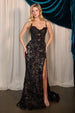 Andrea & Leo A1499 Ethereal Floral Lace Thigh High Slit Fitted Lace Gown