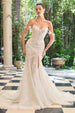 Crafted for a statement entrance, this romantic fitted gown by Andrea & Leo WL099 features an illusion corset bodice and dimensional floral lace that sweeps over every curve. Sheer detailing at the bodice adds modern allure, while delicate off-shoulder floral straps offer a touch of whimsy. Finished with a daring leg slit and dramatic train, this gown balances sultry and soft for the ultimate bridal moment.
