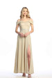 Imagine yourself wearing this full-length A-line gown for your next special event by Celavie 6506-L. This formal dress features a cold off-the-shoulder strap, embellished waist and leg slit. An ideal sleeveless dress for dinner party, semi-formal, wedding guest or in any other formal occasions!