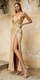 Imagine yourself wearing this long fitted formal evening gown for your next special event! This fitted floor length satin dress by Cinderella Divine 7489 is a stunning style that ‚¬š¬š ¬ ‚¬š¬ž ¢s reminiscent of a Greek goddess. With its sleeveless design and low V-neck, it boasts an open backline that adds sophistication and glamour. This faux wrapped silhouette is complemented with a sensual drape that accentuates the waist for a flattering fit that is sure to allure. This dress is part of the bridal muse collection. An ideal full length dress for red carpet events, pageant, prom or in any other formal occasions!