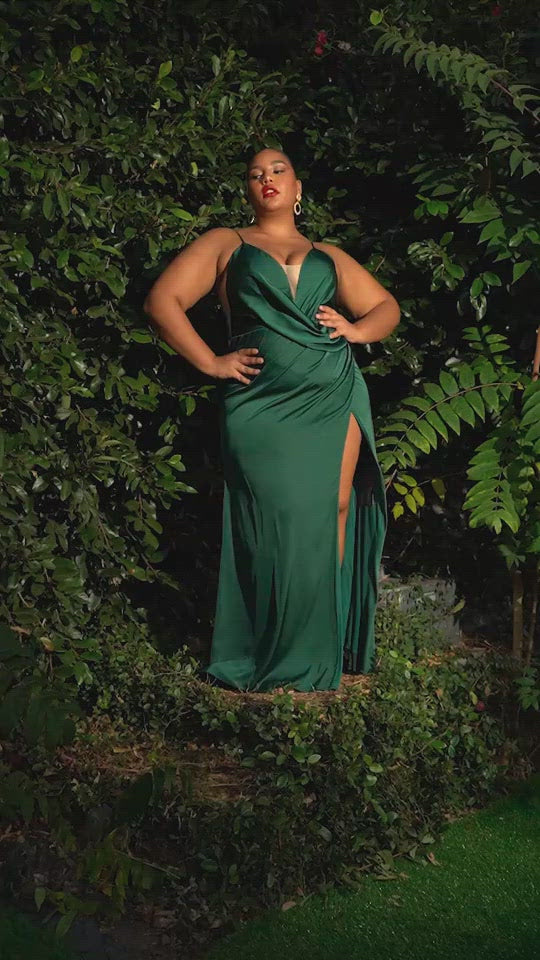 Imagine yourself wearing this long fitted formal evening gown for your next special event! This fitted floor length satin dress by Cinderella Divine 7489C is a stunning style that ‚¬š¬š ¬ ‚¬š¬ž ¢s reminiscent of a Greek goddess. With its sleeveless design and low V-neck, it boasts an open backline that adds sophistication and glamour. This faux wrapped silhouette is complemented with a sensual drape that accentuates the waist for a flattering fit that is sure to allure.  This dress is  part of the  bridal muse collection. An ideal full length dress for red carpet events, pageant, prom or in any other formal occasions!