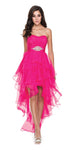 CLEARANCE ITEM -This short high low chiffon dress is strapless with a sweetheart neckline and features a jewels and beads along the middle waistline. The soft chiffon skirt is layered. A cute dress for many different occasions!