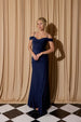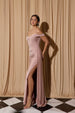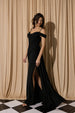Discover timeless sophistication in this floor-length jersey stretch gown by Eureka EK117. Crafted from premium quality fabric that moves with you, this dress features a graceful cold off-shoulder design with delicate straps and a secure zipper back. The fitted silhouette is enhanced by a dramatic side slit and an elegant cowl neckline, while a coordinating side sash adds a refined finishing touch.