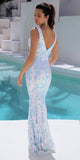Eureka Fashion EK101 Floor Length Iridescent Detail V-Neckline Fitted Gown