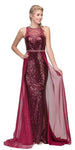 Eureka Fashion 3335 Illusion Sequins Prom Gown Sleeveless with Sheer Train Burgundy