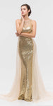 Eureka Fashion 3335 Illusion Sequins Prom Gown Sleeveless with Sheer Train Gold