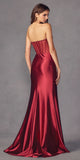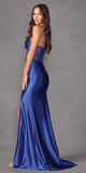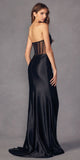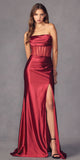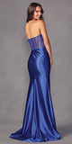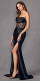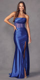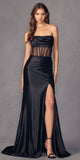 Juliet 2416 Floor Length Strapless Sheer Boned Bodice Slit Satin Dress