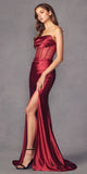 This stunning Juliet 2416 dress is a timeless formal choice. Crafted from satin, its figure-hugging silhouette features a strapless cowl neckline, boned sheer bodice, and corset-boned pleated bodice for an elegant structure. A high leg slit and sweep train complete this dreamy floor-length style. An ideal full-length dress for red carpet events, pageant, prom or in any other formal occasions!
