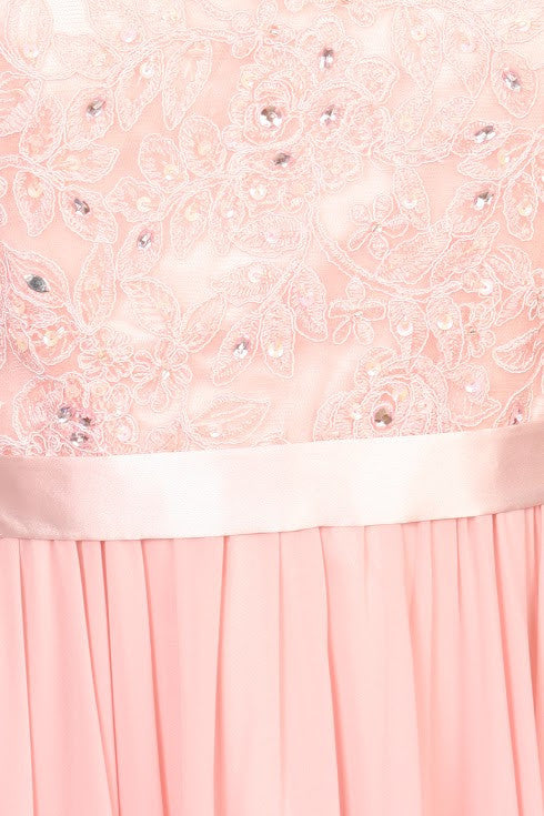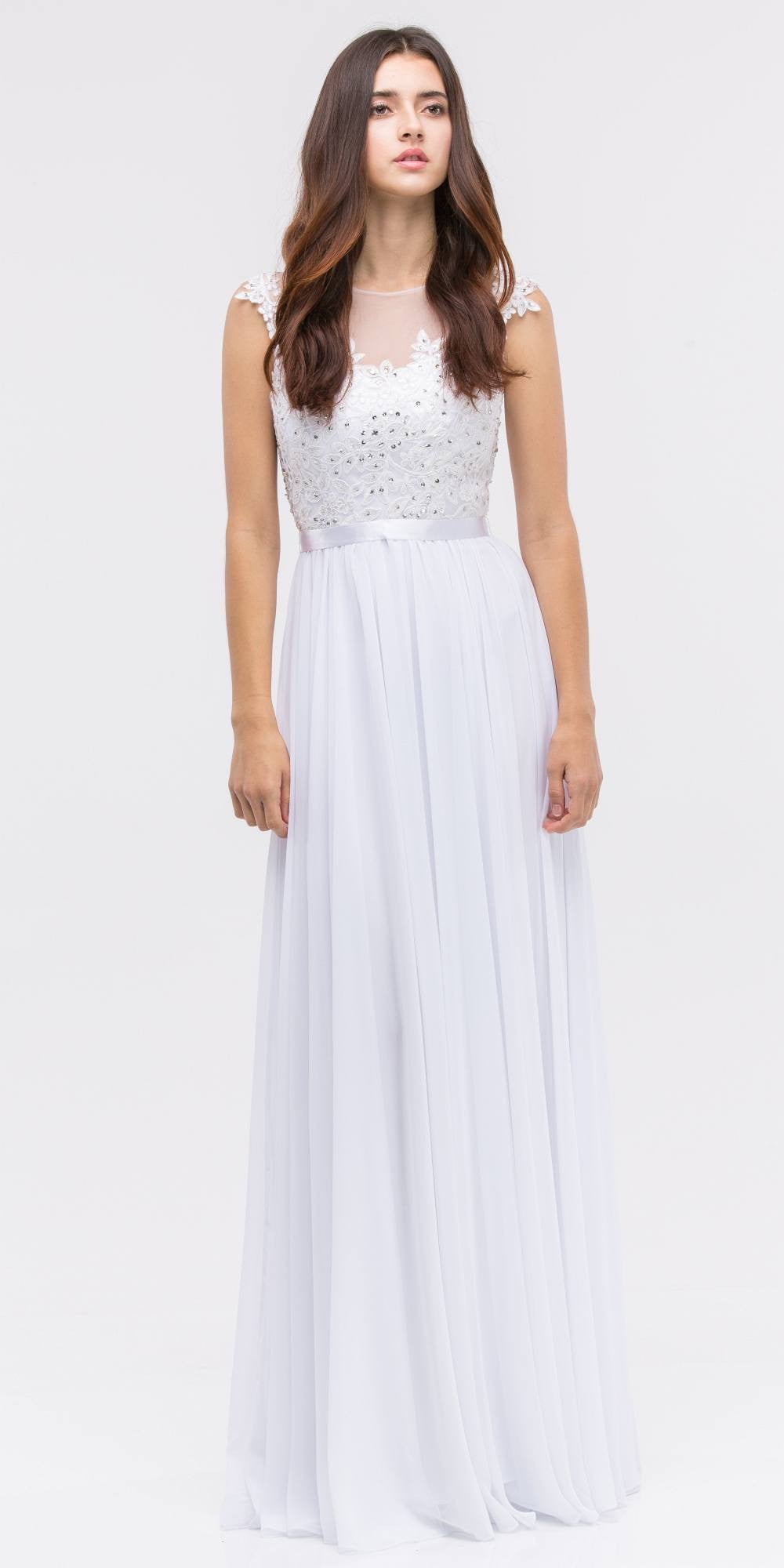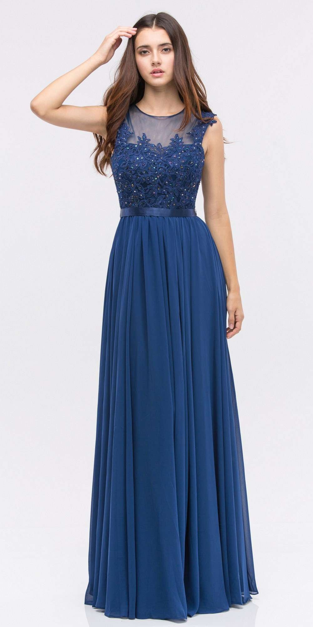 Illusion boat neckline, lace applique bodice. A pretty A-line long dress, shirred waist accented with satin waistband. Cap sleeves burgundy chiffon dress.