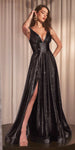 Ladivine CC2349 Long Glitter Stretch Satin A-Line Evening Gown