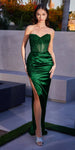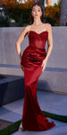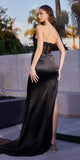 Imagine yourself in this beautiful floor length fitted evening gown for your next formal event by Ladivine CD282. This long formal satin dress is strapless with a sweetheart neckline and features a corset boned sheer bodice and side leg slit.   An ideal full-length dress for red carpet events, pageant, prom or in any other formal occasions!