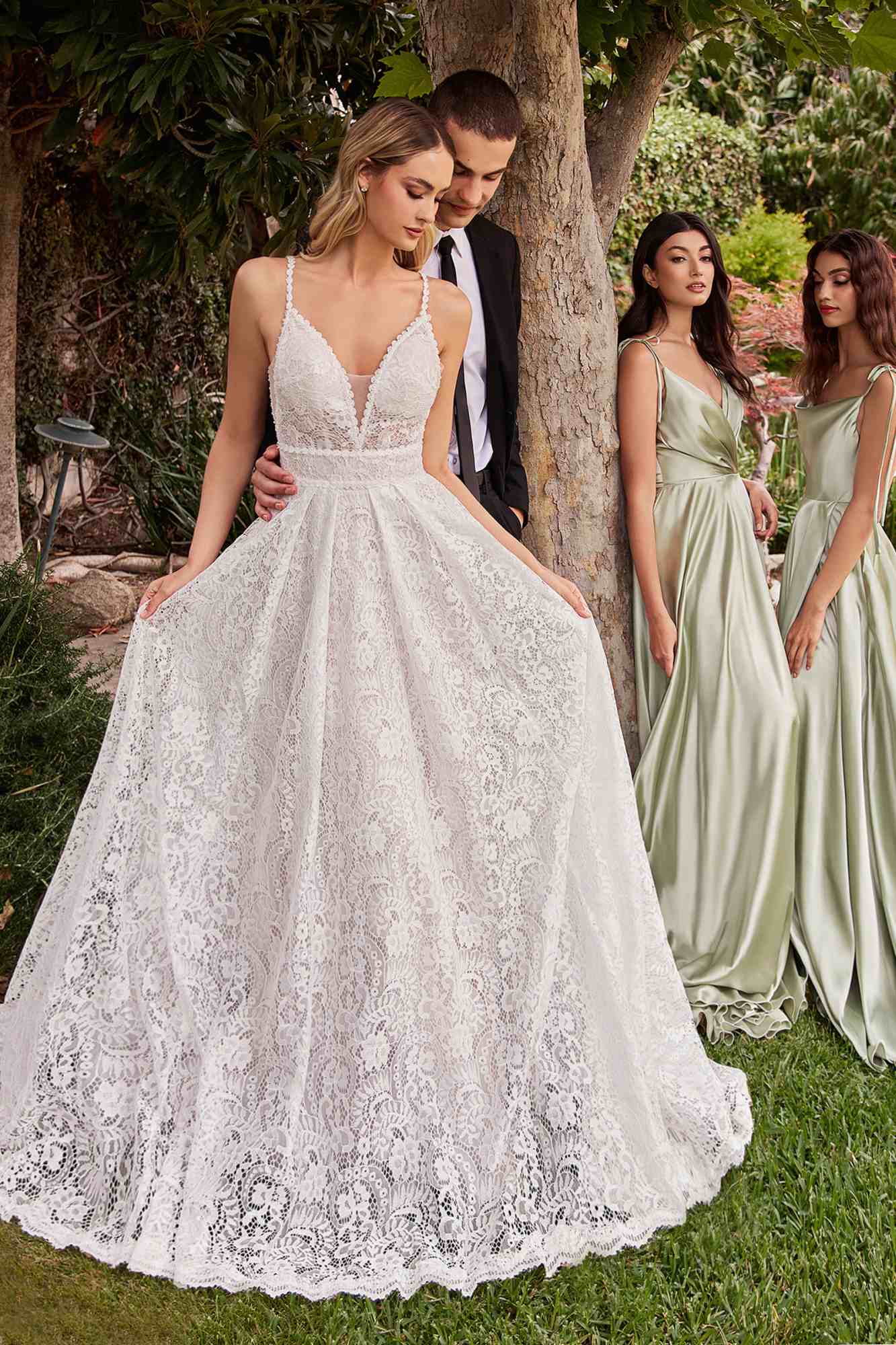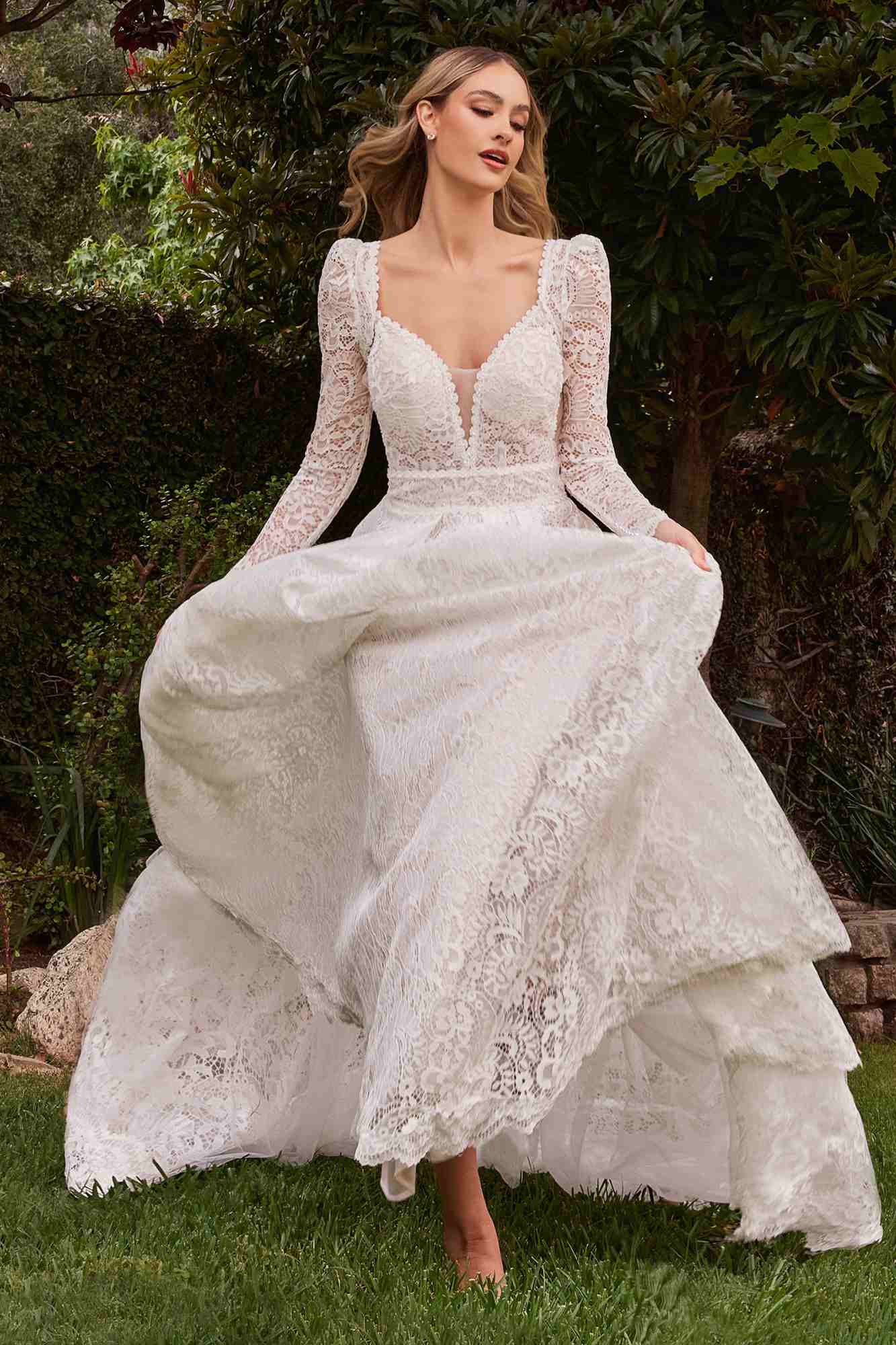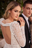 Ladivine CD862W Floor Length Lace A-Line Bridal Gown Removable Sleeves