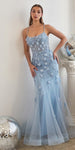 Imagine yourself in this beautiful floor length fitted evening gown for your next formal event by Ladivine CD995. This long formal has a square neckline with spaghetti straps and features floral applique and an open criss-cross corset lace up tie back. An ideal full-length dress for red carpet events, pageant, prom or in any other formal occasions!