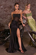 Designed for bold entrances and unforgettable moments, this fitted evening gown by Ladivine CW301 delivers high-glamour impact with a couture edge. The strapless sheer corset bodice is drenched in radiant rhinestone and bead embellishments, contouring the torso with structured boning and sheer illusion paneling. A dramatic high slit and draped hip detail flatter the silhouette, while the stretch satin or shimmer fabrication offers just the right amount of fluidity and sheen. Whichever color you choose, this design was made to steal the spotlight at prom, pageants, or red-carpet events.