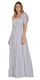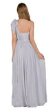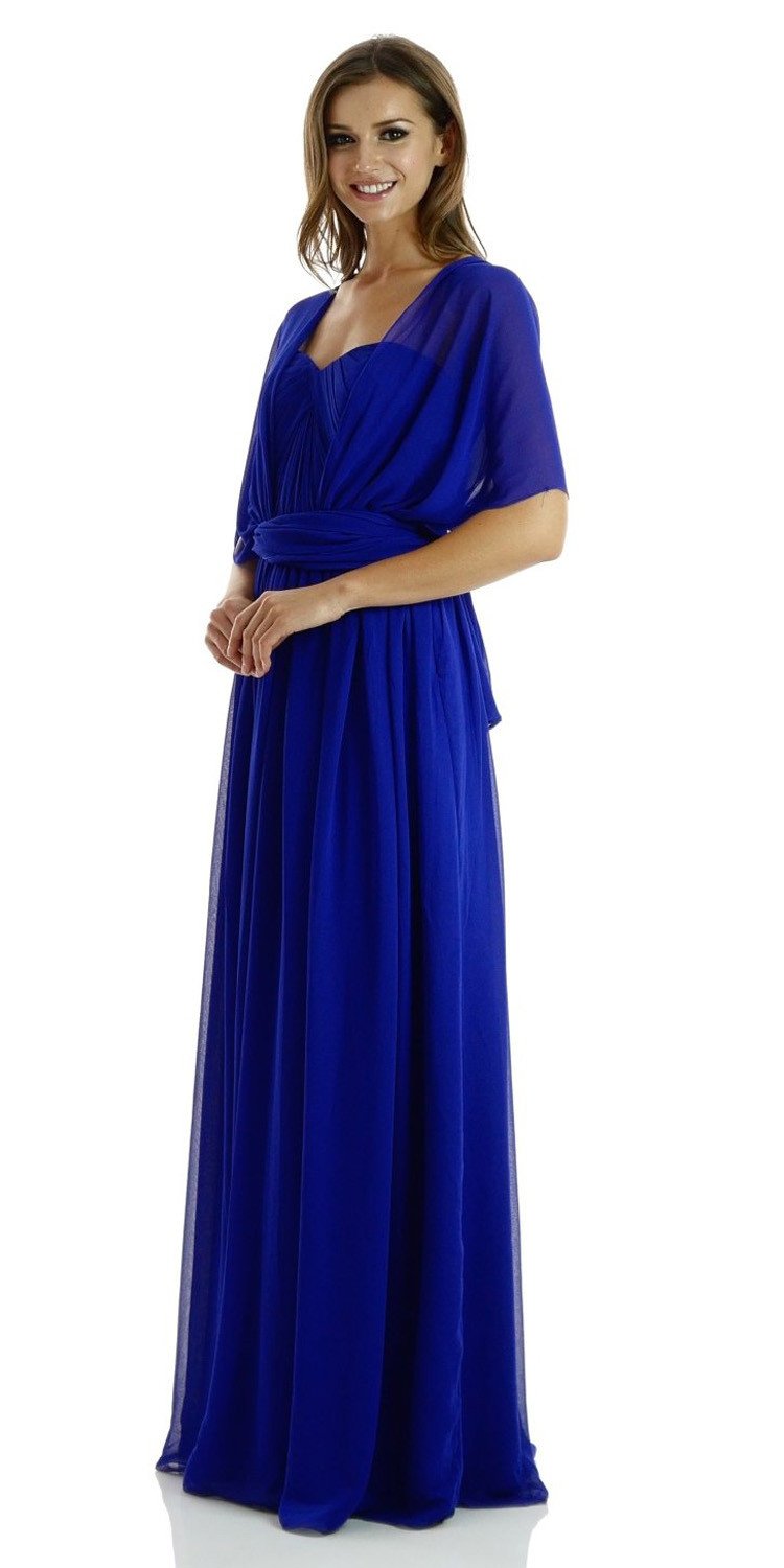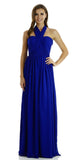 Convertible strapless chiffon dress. Long panels that come from the waistline can be artfully wrapped and tied over the bodice to create more than 10 different elegant looks. Side zipper closure.