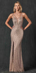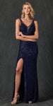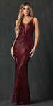 Imagine yourself wearing this stunning formal gown by Juliet 264. This long sequin fitted dress features sheer side cutouts, deep V-neckline, front leg slit and open V-back. An ideal full-length dress for red carpet events, pageant, prom or in any other formal occasions!