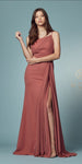 Imagine yourself wearing this gorgeous floor length column gown for your next formal event. This long formal dress by Nox Anabel E1005 features a one shoulder strap, pleated waistline and front leg slit. An ideal long dress for red carpet events, pageant, prom or in any other formal occasions!