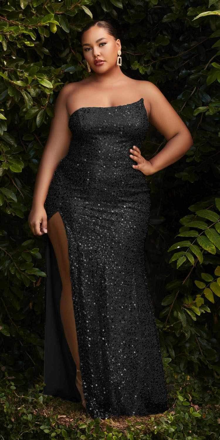 Imagine yourself in this beautiful floor length fitted  sequins  evening gown for your next formal event. This one shoulder formal dress by Cinderella Divine CH165C has an asymmetrical strapless design with an open corset lace up back. This dress has a sexy appeal and features a front leg slit. A simply stunning full length dress for  red carpet events,  pageant,  prom  or in any other formal occasions!