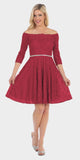 Celavie 6343S Off-the-Shoulder Short Lace A-Line Dress Mid Length Sleeves