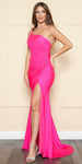 Imagine yourself wearing this beautiful long fitted formal dress by Poly USA | Ed Young 9132. This sleeveless floor length span jersey gown has an asymmetrical neckline with a one shoulder double strap and features a front leg slit and sweep train.  An ideal full-length dress for prom, awards ceremony or any other formal occasions