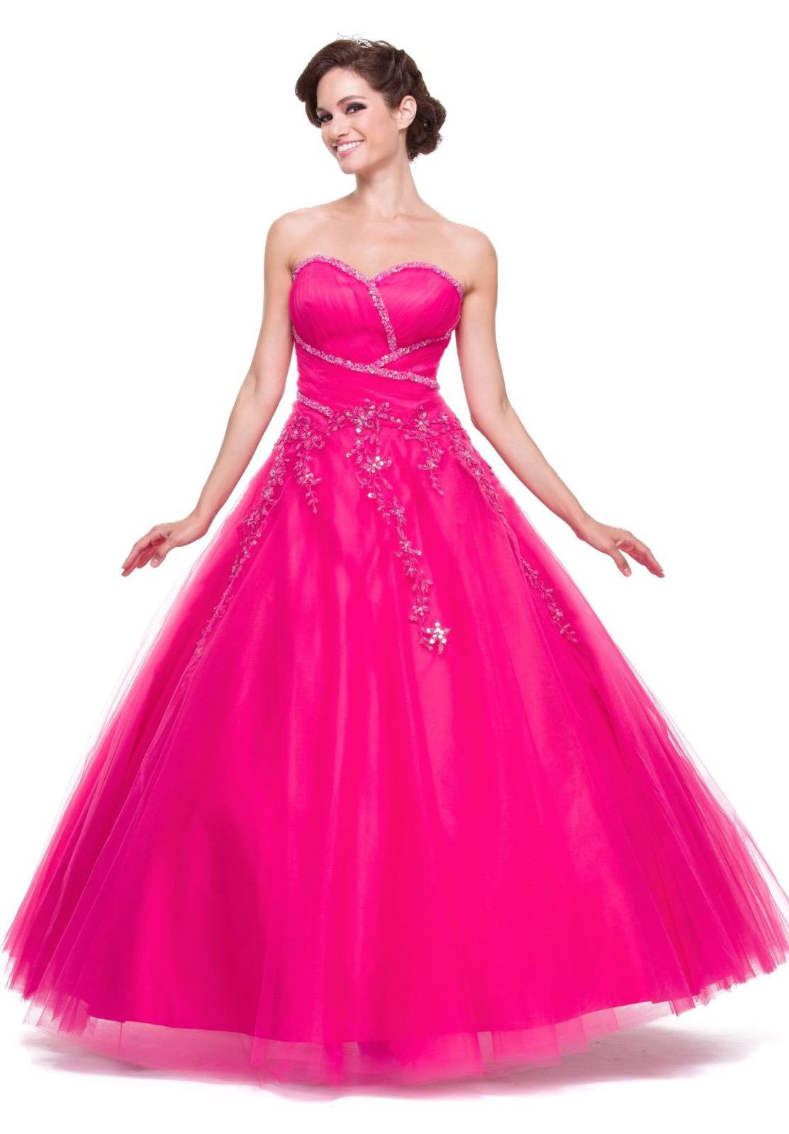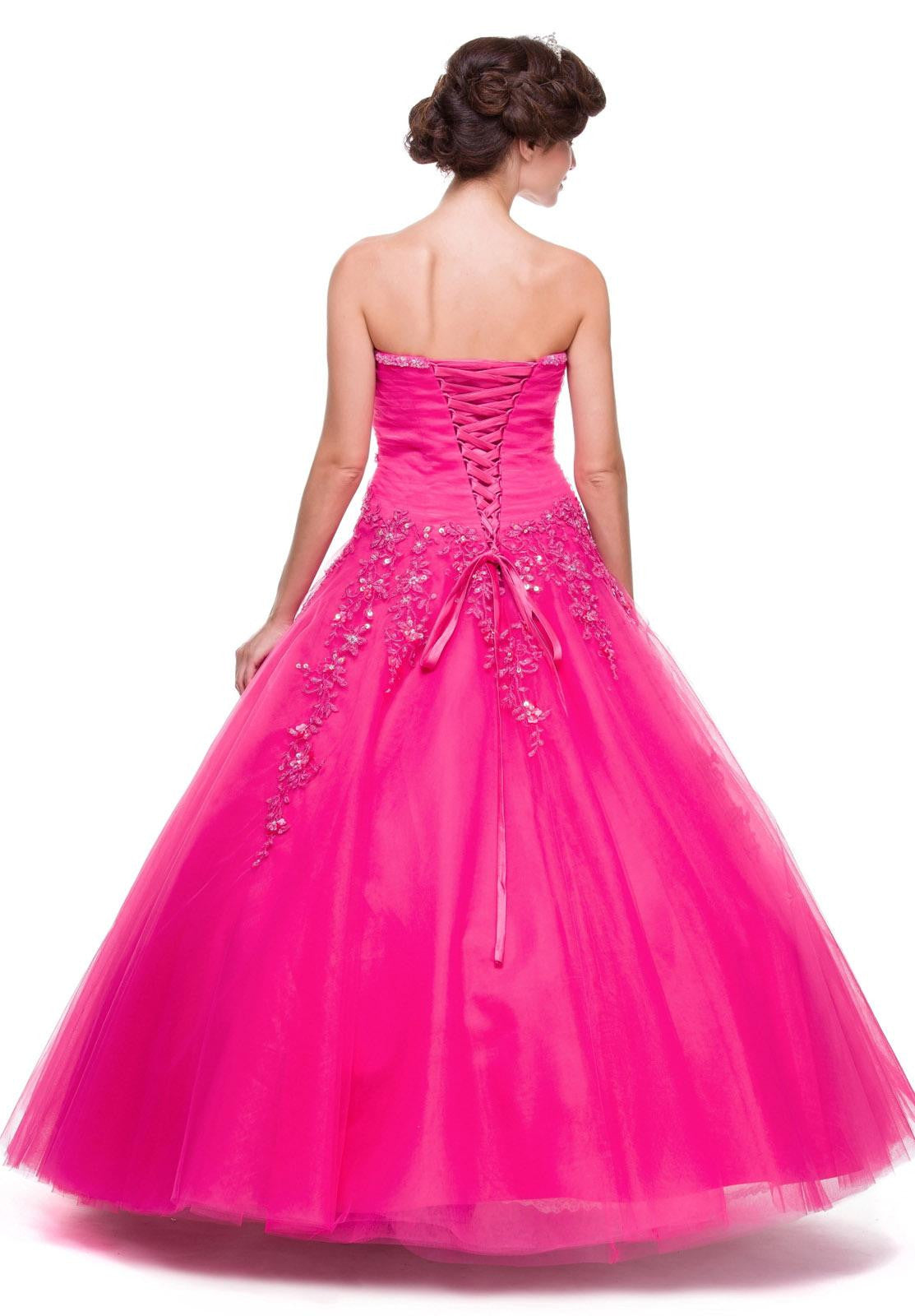 Poofy Fuchsia Quinceanera Tulle Dress A Line Strapless Beading