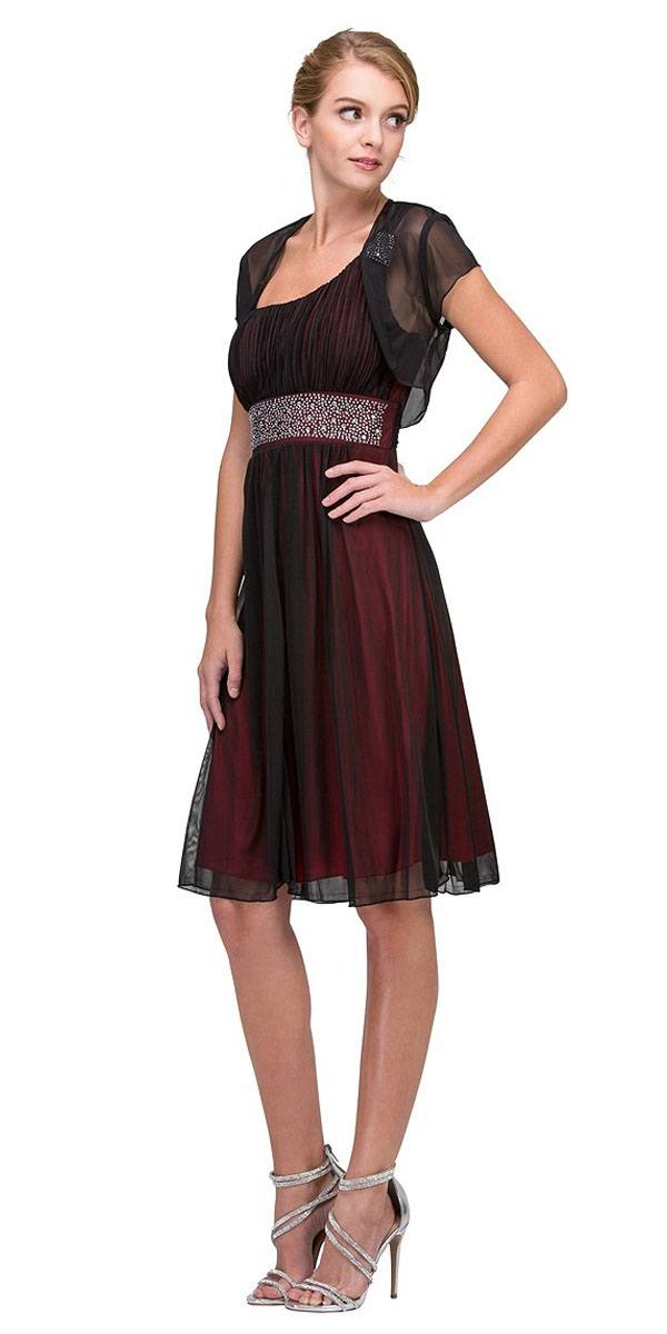 Ruched Bodice Single Strapped Black/Red A Line Cocktail Dress