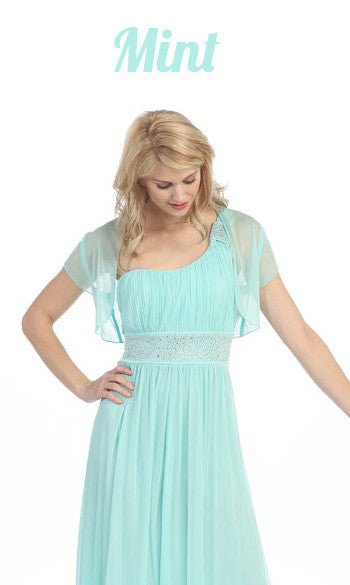 Ruched Bodice Single Strapped Mint A Line Cocktail Dress