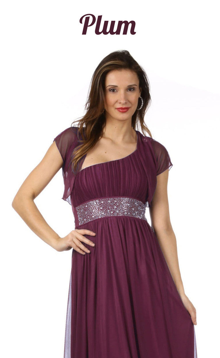 An A-line dress is a sure-shot way to instantly look chic and polished without trying too hard! This beautiful dress in fuchsia can be easily worn for a special outing or a cocktail dinner as its ruched bodice and multiple pleats flowing below the studded empire waistline add an endearing charm to the overall attire. This one-shoulder dress reaches up to knee-length and flaunts an asymmetrical neckline that is further highlighted with a short-sleeved shrug featuring an open-front design.