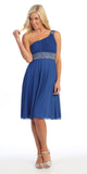 Ruched Bodice Single Strapped Royal Blue A Line Cocktail Dress