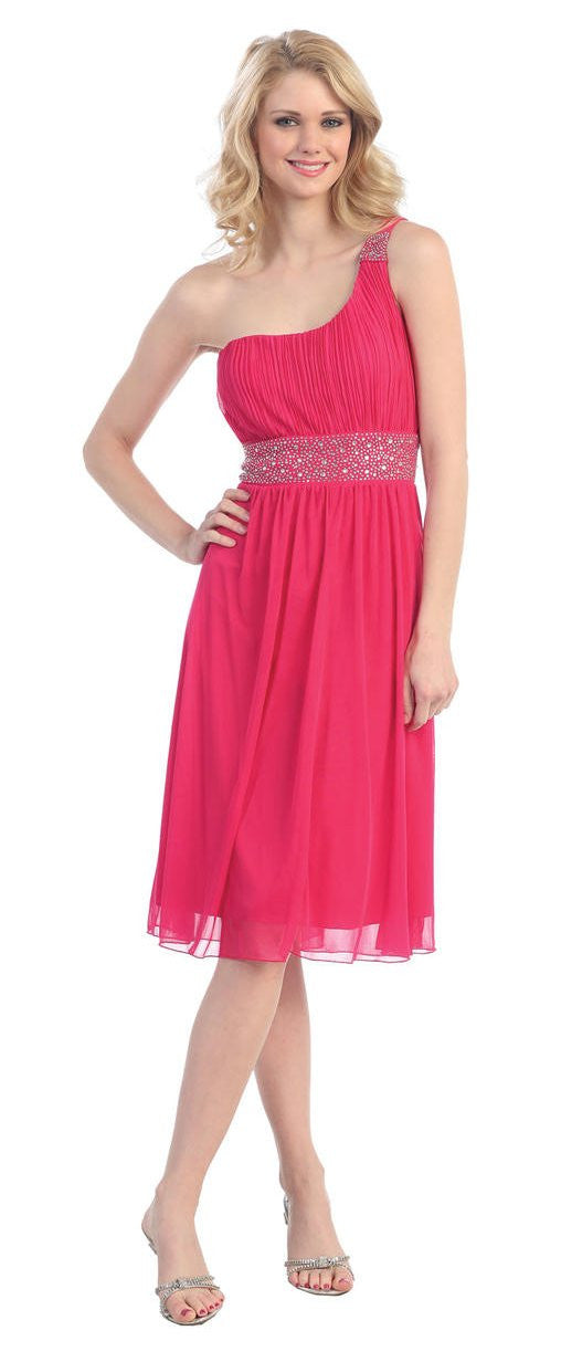 Ruched Bodice Single Strapped Fuchsia A Line Cocktail Dress