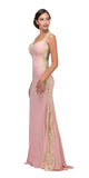 Eureka Fashion 6006 Sheath Mermaid Silhouette Gown Blush Gold Floor Length Lace Trim