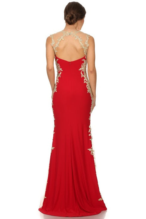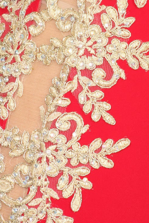 Eureka Fashion 6006 Sheath Mermaid Silhouette Gown Red Gold Floor Length Lace Trim