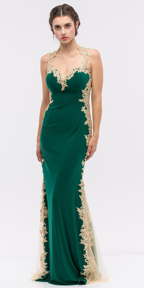 Eureka Fashion 6006 Sheath Mermaid Silhouette Gown Hunter Green Floor Length Lace Trim