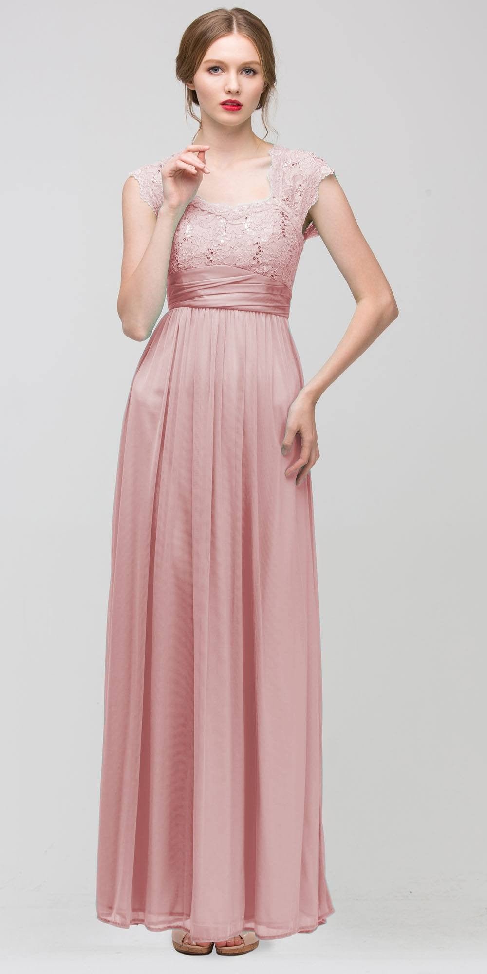 Sweetheart Neck Lace Bodice Dusty Pink Floor Length Dress