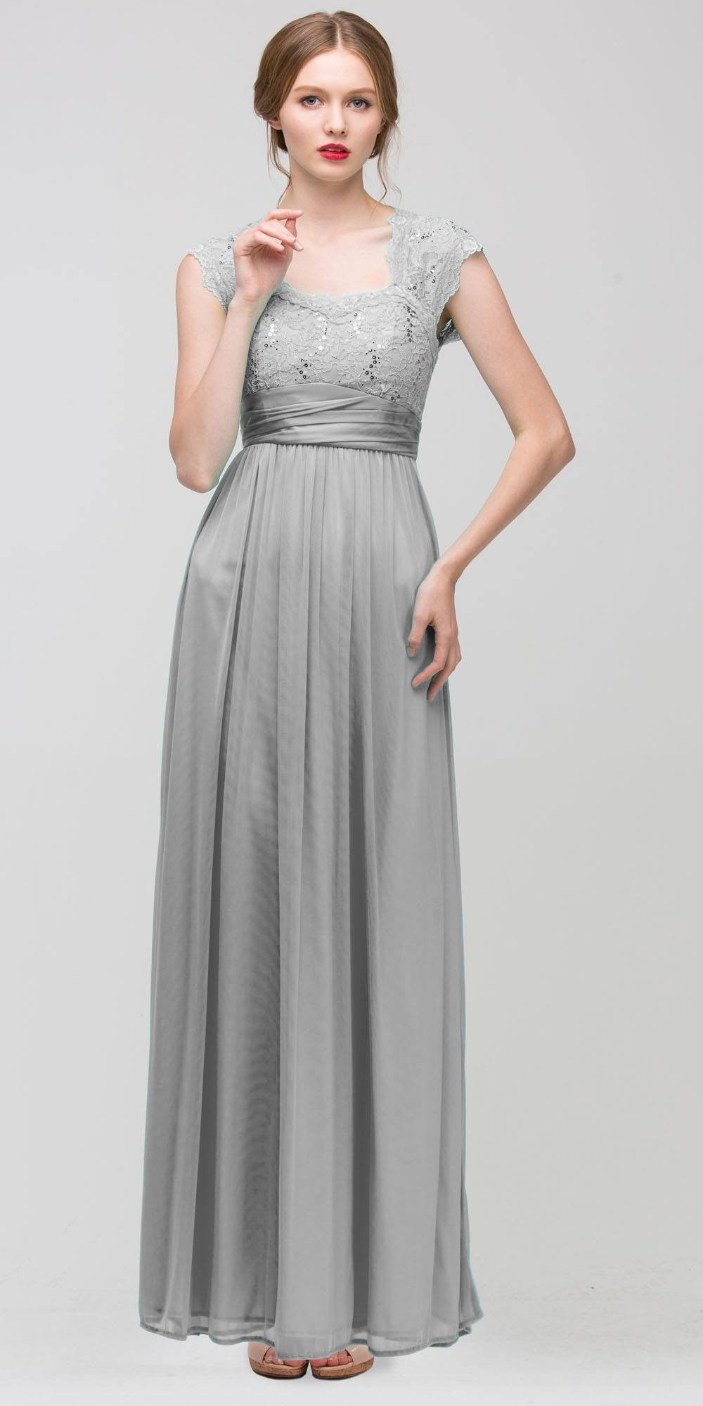 Sweetheart Neck Lace Bodice Silver Floor Length Dress