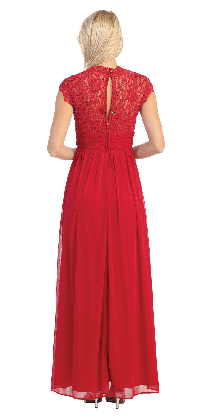 Sweetheart Neck Lace Bodice Red Floor Length Dress Back