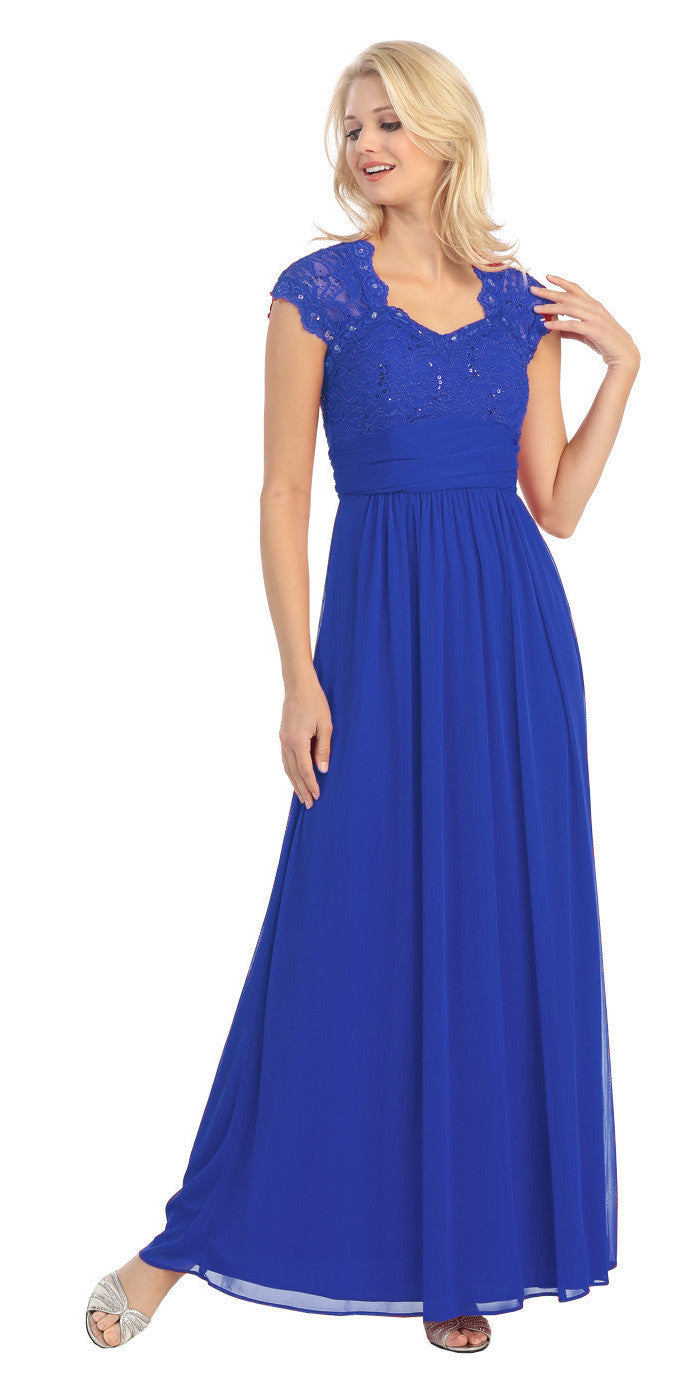 Sweetheart Neck Lace Bodice Royal Blue Floor Length Dress